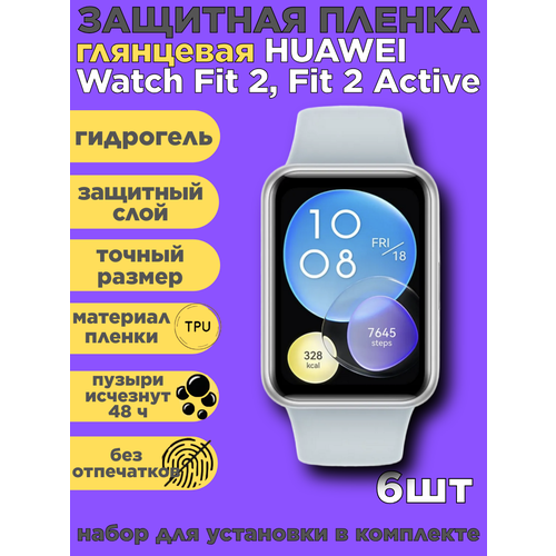 Комплект 6 шт. Защитная пленка на HUAWEI Watch Fit 2, Fit 2 Active, глянцевая