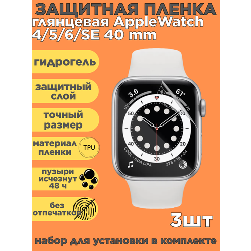 Комплект 3 шт. Защитная пленка на Apple Watch 4, 5, 6, SE 40 mm, глянцевая