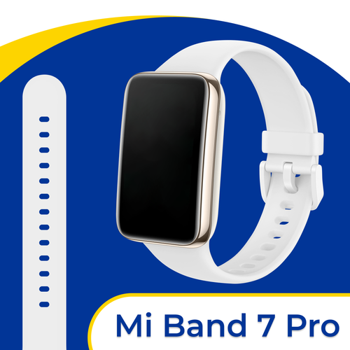 Силиконовый ремешок для фитнес-трекера Xiaomi Mi Band 7 Pro / Спортивный сменный браслет на смарт часы Сяоми Ми Бэнд 7 Про / Белый