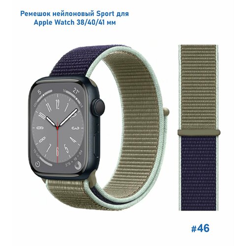Ремешок нейлоновый Sport для Apple Watch 38/40/41 мм, на липучке, хаки+синий (46)