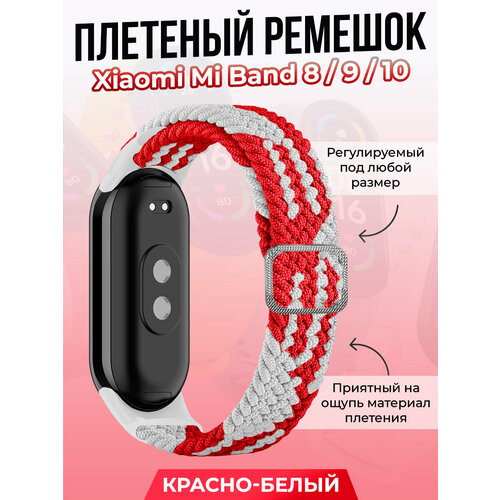 Плетеный ремешок для Xiaomi Mi Band 8/ 9, регулируемый под любой размер, красно-белый