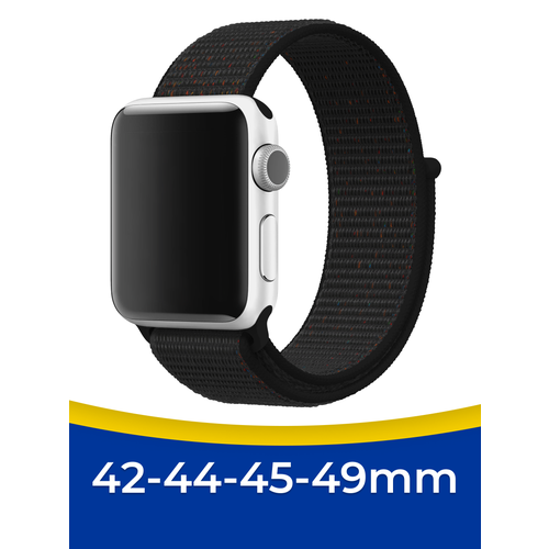 Нейлоновый ремешок для смарт часов Apple Watch 1-9, SE, Ultra 42, 44, 45, 49 мм / Сменный тканевый браслет для Эпл Вотч 1-9, СЕ / Черно-оранжевый