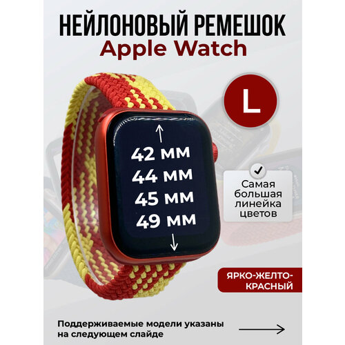 Нейлоновый ремешок для Apple Watch 1-9 / SE / ULTRA (42/44/45/49 мм), без застежки, ярко-желтый-красный 2, размер L