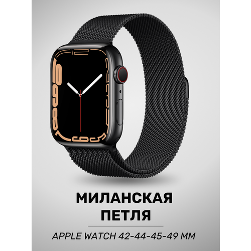 Ремешок металлический для Apple Watch 1-9, СЕ, Ultra 42-44-45-49 мм, Смарт браслет, Миланская петля, Черный, Эпл вотч