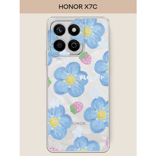 Силиконовый чехол "Цветы и клубники" на Honor X7c / Хонор X7c, прозрачный