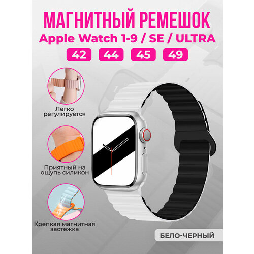 Магнитный силиконовый ремешок для Apple Watch 1-9 / SE / ULTRA (42/44/45/49 мм), бело-черный