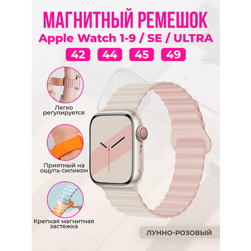 Магнитный силиконовый ремешок для Apple Watch 1-9 / SE / ULTRA (42/44/45/49 мм), лунно-розовый