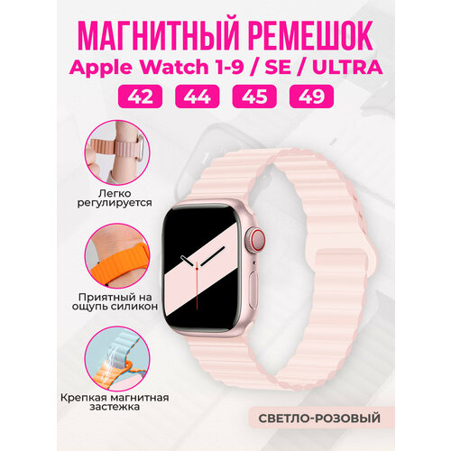 Магнитный силиконовый ремешок для Apple Watch 1-9 / SE / ULTRA (42/44/45/49 мм), светло-розовый