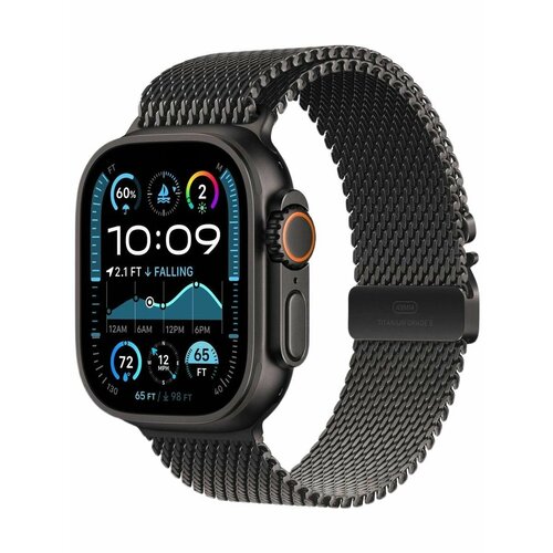 Титановый ремешок для Apple Watch 49 / 45 / 44 mm Black Titanium Milanese Loop OEM