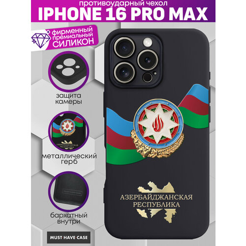 Чехол на iPhone 16 Pro Max с Металлическим Гербом Азербайджана с картой