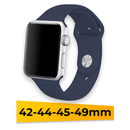 Силиконовый ремешок для Apple Watch 42-44-45-49mm / Спортивный сменный браслет для умных смарт часов Эппл Вотч 1-9 Series и SE, Ultra / Blue