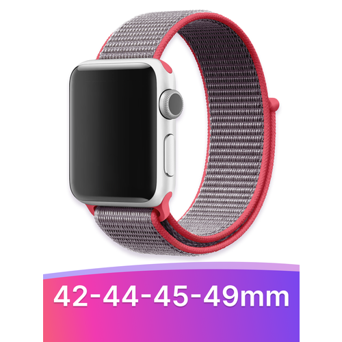 Нейлоновый ремешок для часов Apple Watch series 1-9, SE, Ultra, 42-44-45-49 mm / Браслет на липучке для Эпл Вотч серии 1-9, СЕ, Ультра, 42-44-45-49 мм (Розово-фиолетовый)