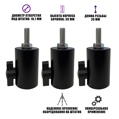 Штативный адаптер с винтовой металл резьбой 1/4, 20 мм и гайкой, 3 шт