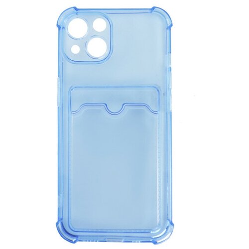 Защитный силиконовый чехол LuxCase с картхолдером для пластиковых банковских карт, синий прозрачный кейс бампер с кармашком на Apple iPhone 13