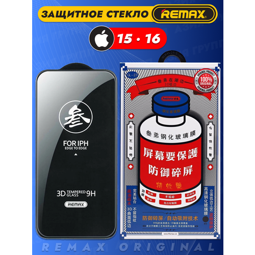 Усиленное защитное стекло Remax для iPhone 15 Pro, 3D, 9H, чёрное