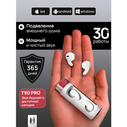 Наушники беспроводные MILDSTORE T90PRO с микрофоном для iPhone/Android, белые