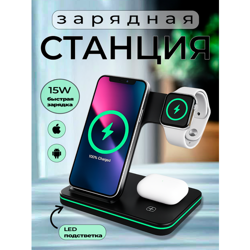 Беспроводная зарядка для iPhone 3 в 1, Зарядная станция для айфона, Apple Watch, AirPods