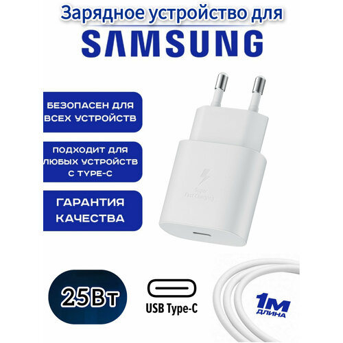 Сетевое зарядное устройство для Samsung + кабель USB Type-C, 25 Вт. быстрая зарядка