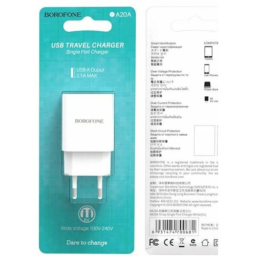 Переходник зярдного устройства на USB 2.1A BA20A Borofone Sharp single (EU)