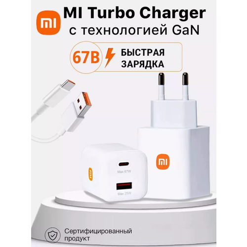 Быстрая зарядное устройство 67W TURBO и кабель Type-C