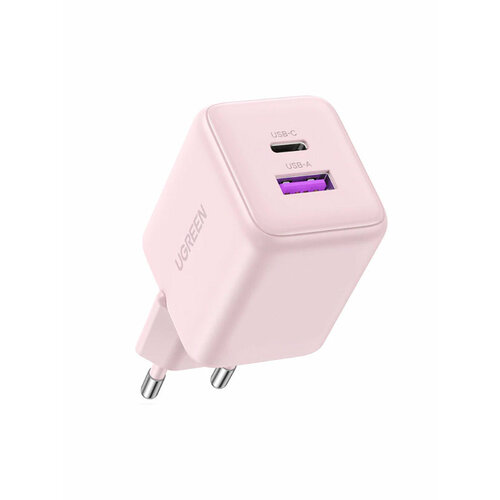 Сетевая зарядка UGREEN X516 (65017) 30W 2-порта USB-C - USB-A GaN розовая
