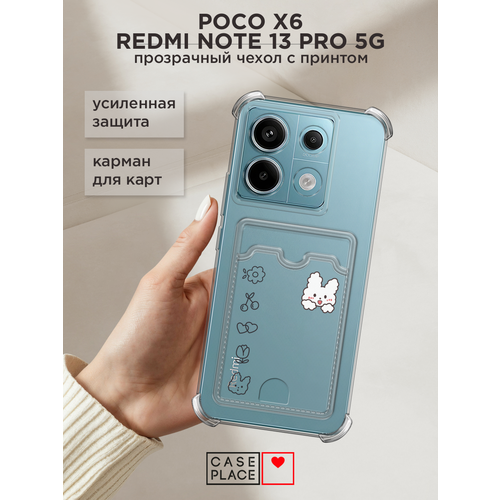 Чехол на Poco X6/Redmi Note 13 Pro 5G (Поко Х6/Сяоми Редми Нот 13 Про 5G) с картой и принтом Пушистый белый зайчик