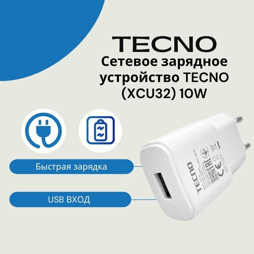 Сетевое зарядное устройство Tecno 10W (XCU32) с USB входом . Белый