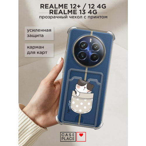 Чехол на Realme 12+/12 4G/13 4G (Реалми 12 Плюс/12 4G/13 4G) с картой и принтом Котик спит в кармане