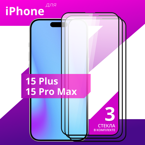 Комплект 3 шт. Защитное противоударное стекло для телефона Apple iPhone 15 Pro Max и iPhone 15 Plus / Глянцевое стекло с олеофобным покрытием на смартфон Эпл Айфон 15 про Макс и Айфон 15 Плюс
