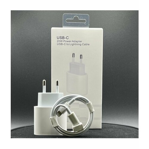 Быстрая зарядка 18-20W с кабелем type c - lightning для Apple iphone. Fast charge, quick charge. Мощный адаптер питания блок с кабелем 20Вт