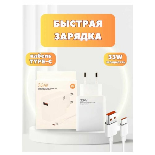 Сетевое зарядное устройство 33W USB разъём+комплекте с кабелем Type-C USB 6A