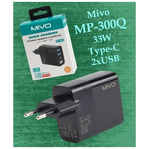 Сетевое зарядное устройство Mivo MP-300Q, 33W, Type-C, 2xUSB