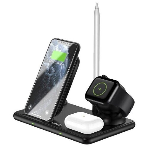 Беспроводная зарядная станция 4 в 1 Mivo MW-04 (iPhone+Apple Watch+AirPods+Apple Pencil) черная