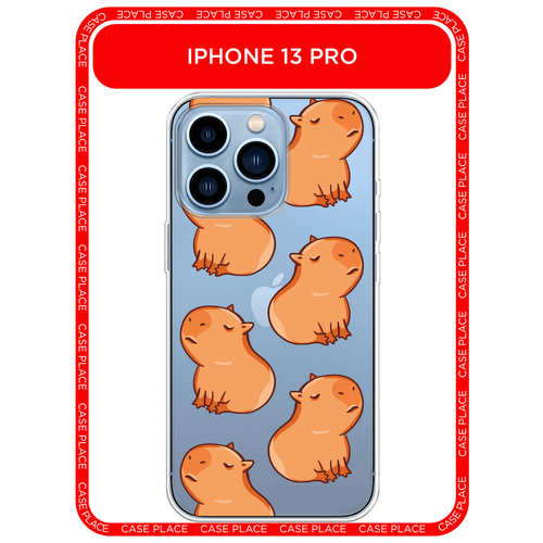 Чехол на Apple iPhone 13 Pro / Айфон 13 Про с принтом Невозмутимые капибары, прозрачный