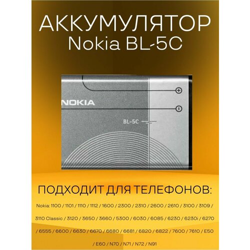 Nokia - аккумулятор, маркировка (BL-5C), качество Original