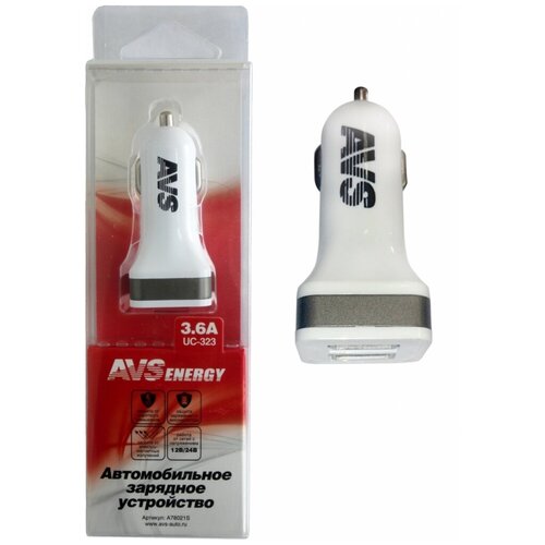 Автомобильное зарядное устройство USB (2 порта) AVS UC-323 (3,6А)