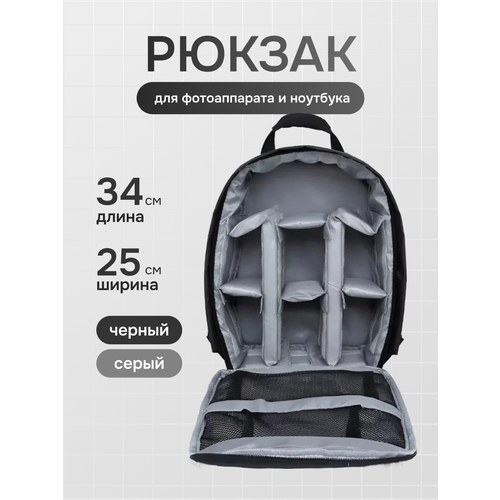 Рюкзак для зеркального фотоаппарата и ноутбука серый с регулируемыми перегородками