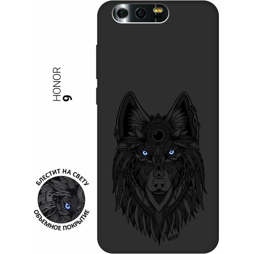 Матовый Soft Touch силиконовый чехол на Honor 9, Хонор 9 с 3D принтом "Grand Wolf" черный