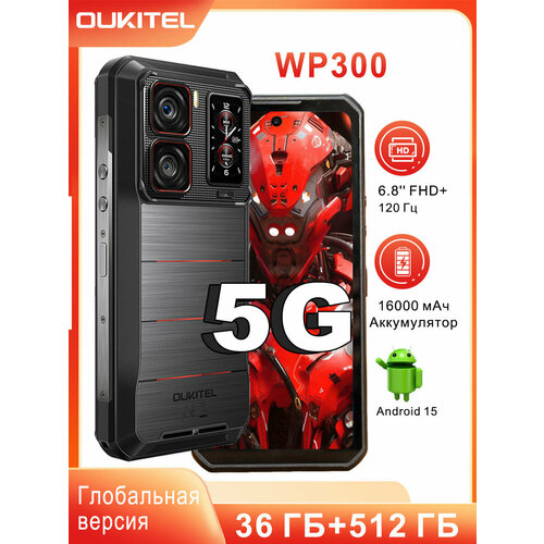 Oukitel Смартфон WP300 36ГБ(12+24)ГБ+512ГБ 32MP+108MP +2MP Система Android 15 С NFC 512 ГБ, черный