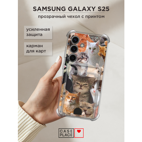 Чехол на Samsung Galaxy S25 (Самсунг S25) с картой и принтом Мемные коты