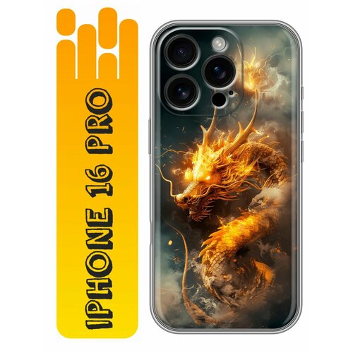Чехол для Iphone 16 Pro с принтом Золотой дракон (Айфон 16 Про)