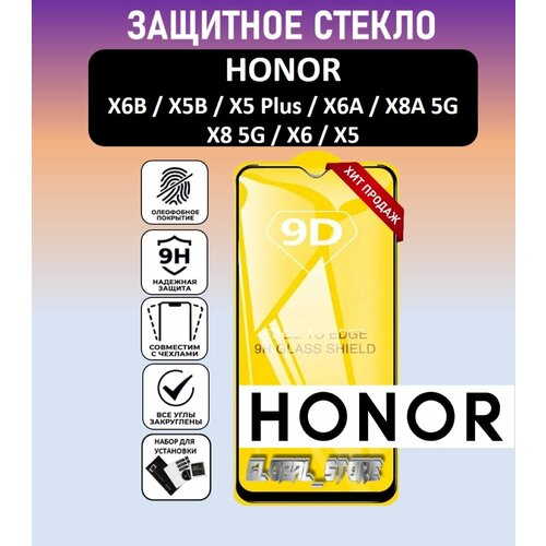 Комплект 5 в 1: Защитное стекло для HONOR X6b / X6 / X6a / X5 Plus / X8a 5G ( 5 шт ) Хонор Икс 6а / Икс 6 / Икс 8а 5Г стекло с рамкой Full Glue