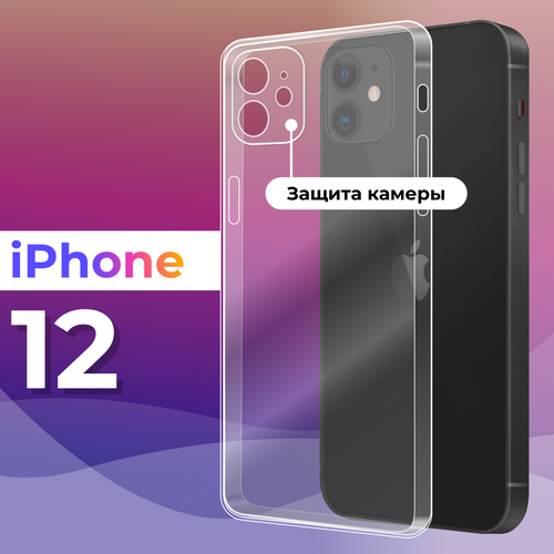 Силиконовый чехол для iPhone 12 с защитой камеры / Прозрачный Premium чехол на Айфон 12