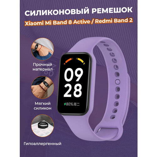 Cиликоновый ремешок для Xiaomi Mi Band 8 Active / Redmi Band 2, лавандовый