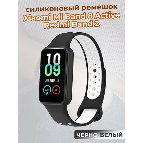 Двухцветный ремешок для Xiaomi Mi Band 8 Active / Redmi Band 2, черно-белый