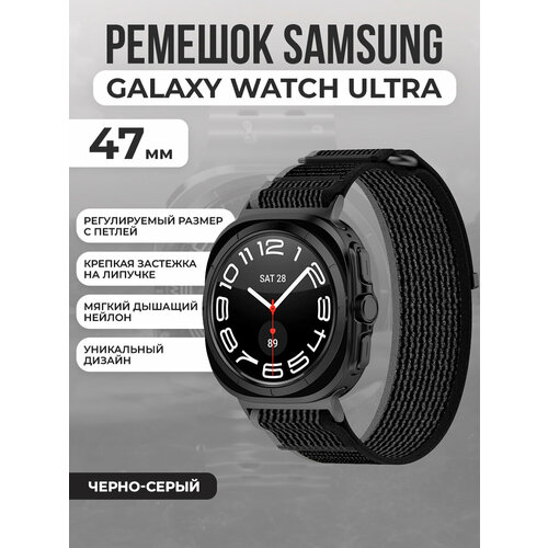 Нейлоновый ремешок на липучке для Samsung Galaxy Watch Ultra, 47 мм, черно-серый