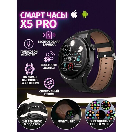 Умные часы круглые, Smart Watch X5 PRO Черный, 2 ремешка, Flupsic