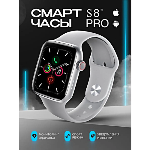 Смарт часы S8 PRO PREMIUM Series Smart Watch TFT Display, iOS, Android, Bluetooth звонки, Уведомления, Серебристые