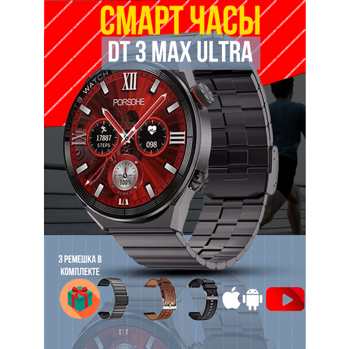 Cмарт часы DT3 MAX ULTRA Умные часы PREMIUM Series Smart Watch AMOLED, iOS, Android, 3 ремешка, Bluetooth звонки, Уведомления, Черный