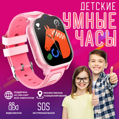Умные детские часы с GPS-навигацией, видеозвонком и защитой от воды, розовый